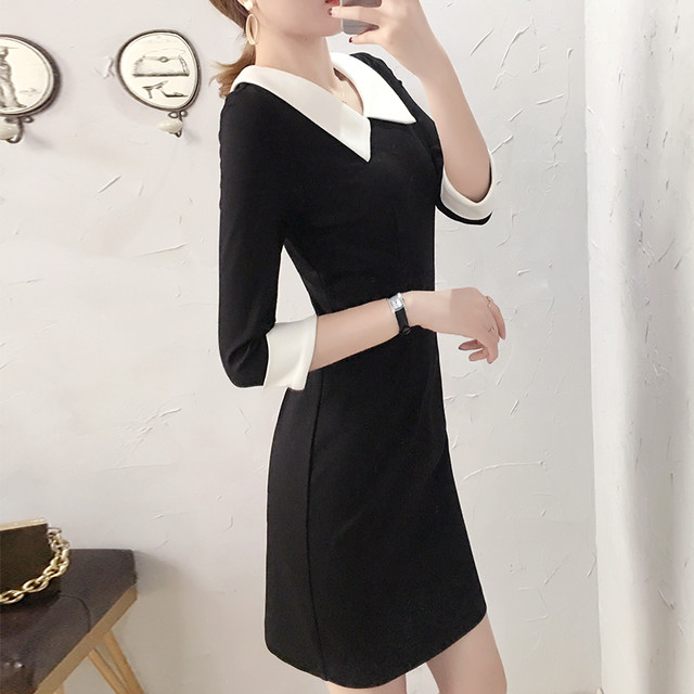 ワンピース バイカラー襟付きのオフィスも行ける大人タイトワンピ Hdfks 韓